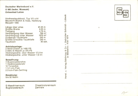 Postcard Ostseebad Laboe, Technical Museum, U 995, deep-sea submersible