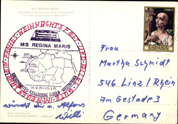 Postcard Banjul Bathurst Gambia, M/S REGINA MARIS, Cruises Canary Islands/West Africa